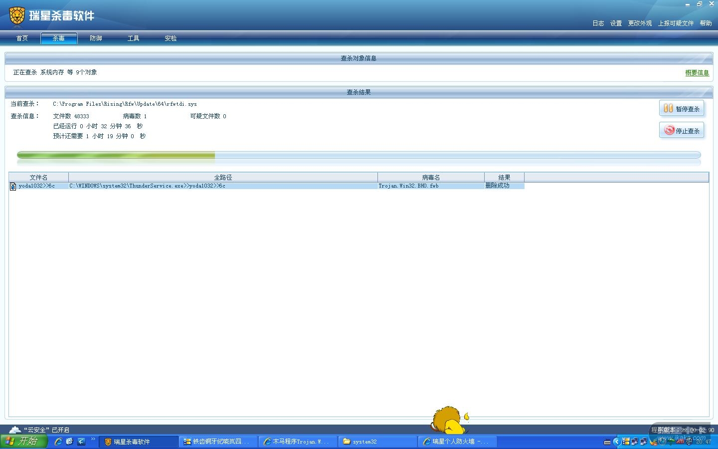 c:\WINDOWS\system\ThunderService.exe>>yoda1032>>6c 病毒名:Trojan.win32.BHO.fwb 每次开机杀毒都有 高手有没有知道怎样啥的啊!!!