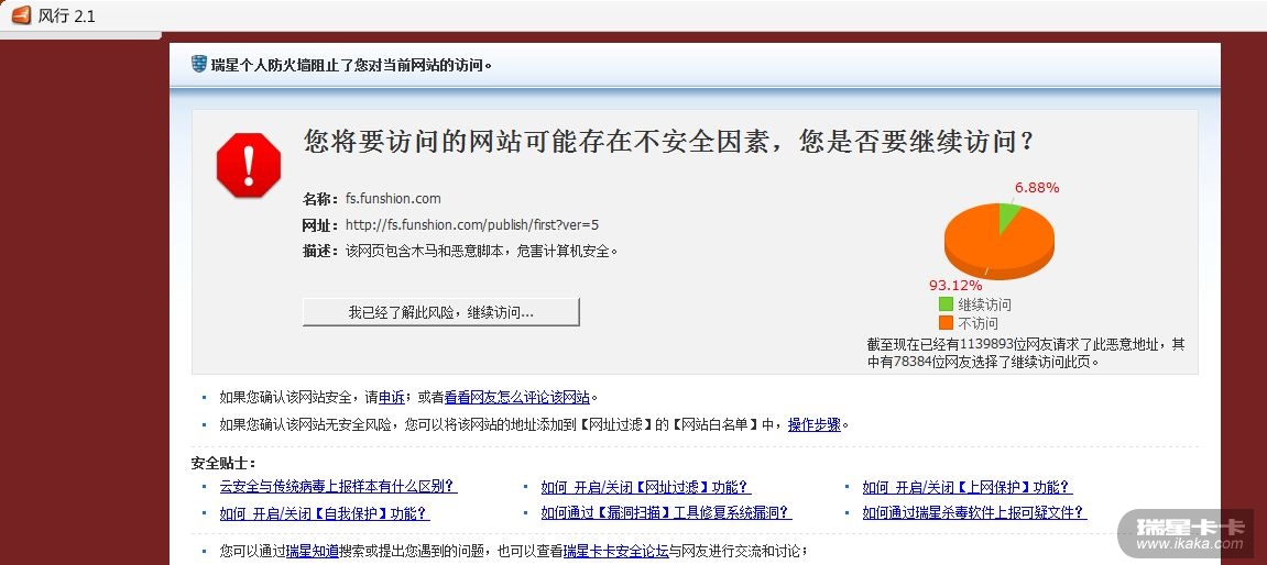 我用风行好几年了,怎么今天就打不开了,瑞星提示,拦截恶意网址,怎么回事~~