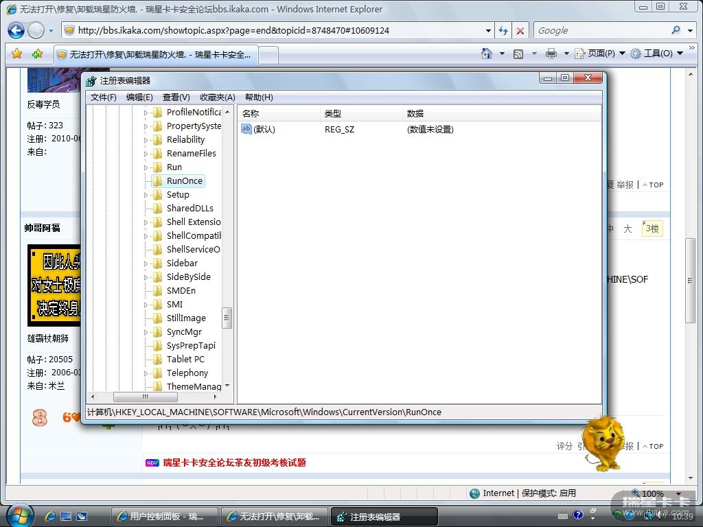 [求助] 无法打开\修复\卸载瑞星防火墙.