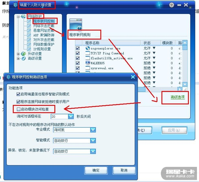 你好,2010版的防火墙有模块访问规则,而升级到2011版后,模块访问规则哪去了?只剩下检查了,希望保留自已可以设定模块访问规则的功能。