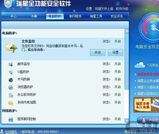 闭瑞星防火墙的监控功能看由哪项功能引起此问题,可以跟帖汇报给工程师