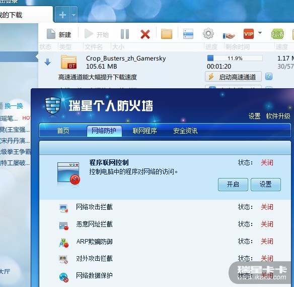 网速正常 我用瑞星防火墙 导致迅雷 下载速度不正常 QQ旋风 下载不稳定 (网截图了) 但是右键保很正常 难道我什么设置错了 我是刚装的 没设置里面的东西