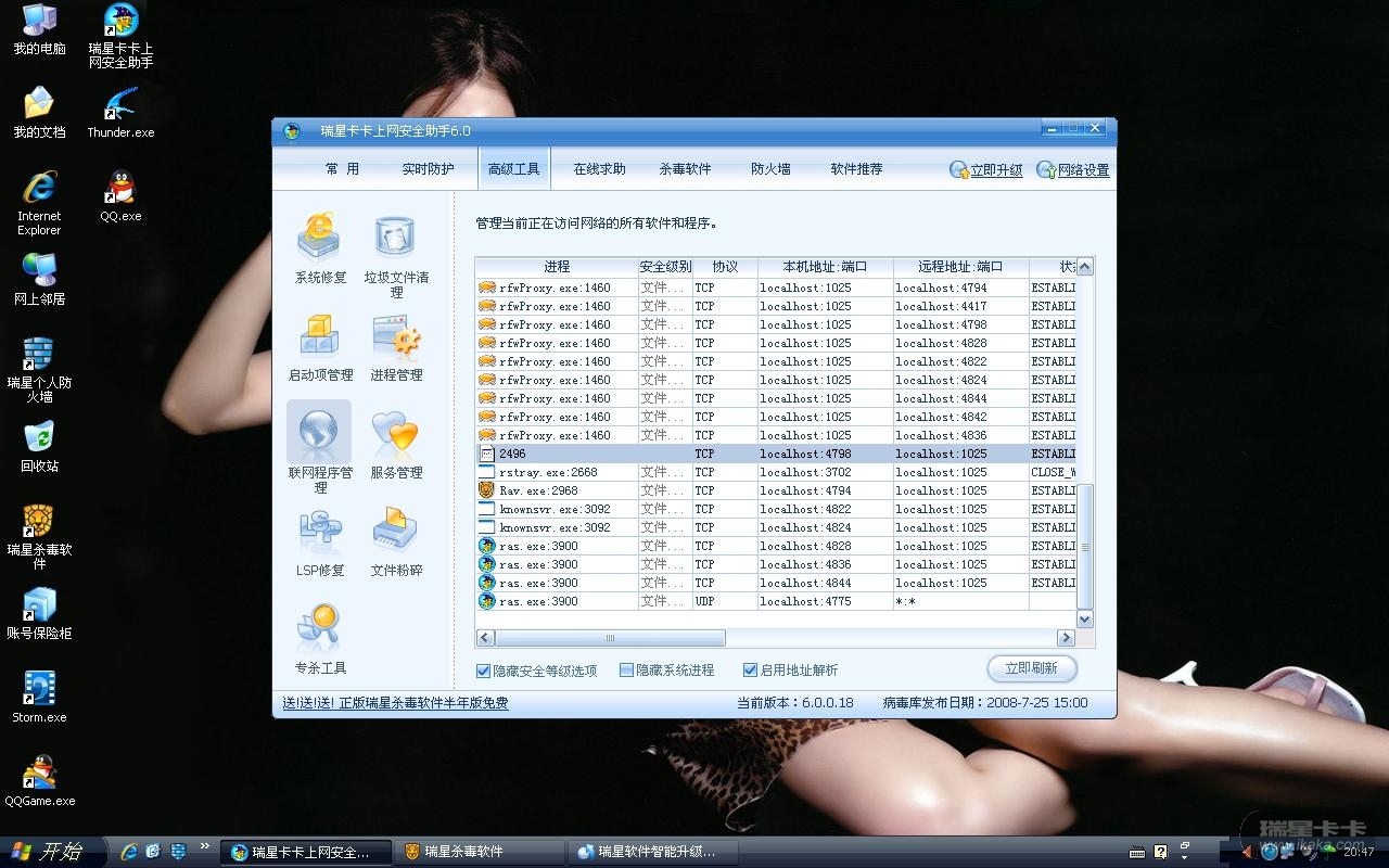 请高手或瑞星技术人员指教!在kaka6.0联网管理窗口出现的未知数字名进程是什么?附图片如下!和日志!