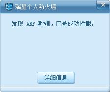 因为局域网内存在arp网关欺骗,瑞星防火墙总在右下角浮起提示对话框(见附图一),很讨厌。