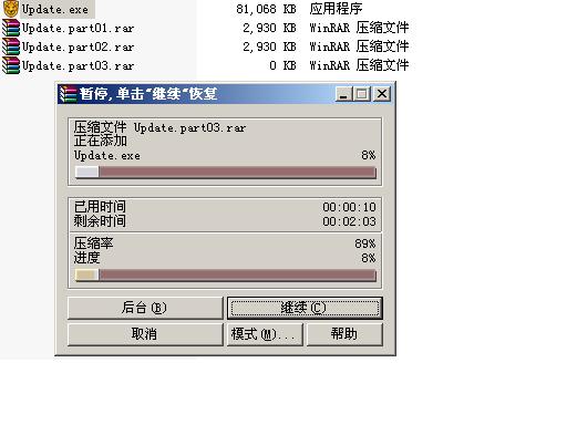 关于文件太大上传不了的问题,可通过winrar分段压缩,如下图: