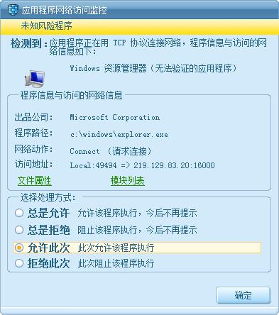 我升级瑞星防火墙到2009后,每次打开windows资源管理器时,瑞星防火墙都弹出窗口说“无法验证的应用程序”问我是否允许运行(见下图)。不可能瑞星连Windows资源管理器都不认识吧,究竟是什么原因呢?