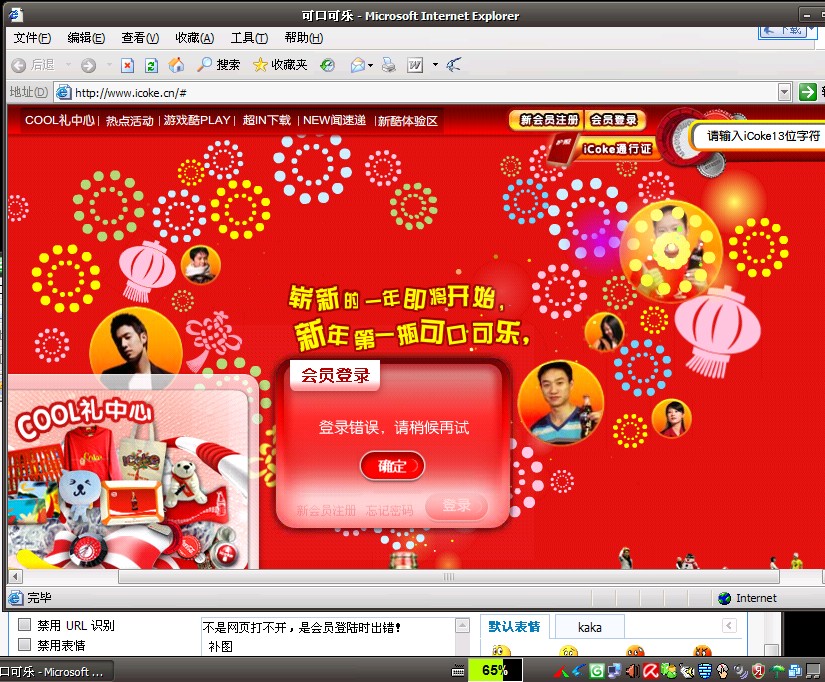 的网站会员登陆给拦住了,关掉墙后,就登陆到icoke了。