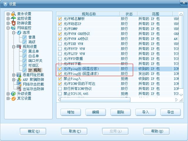 就是把那个禁止ping 入.给改动了一下..把那个禁址改成允许..把类型改成all