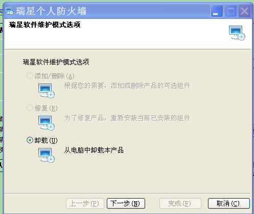 只能选择“卸载”,瑞星杀毒软件可以正常升级!以前没有出现过这种情况!