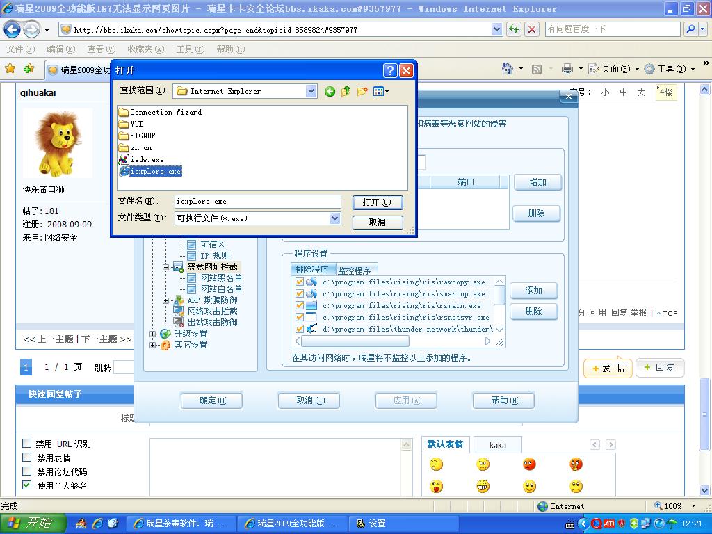 回复:瑞星2009全功能版IE7无法显示网页图片