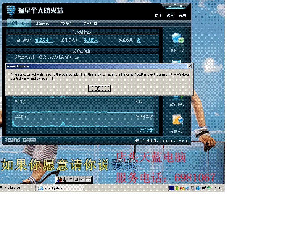 修复瑞星防火墙程序。修复方法: