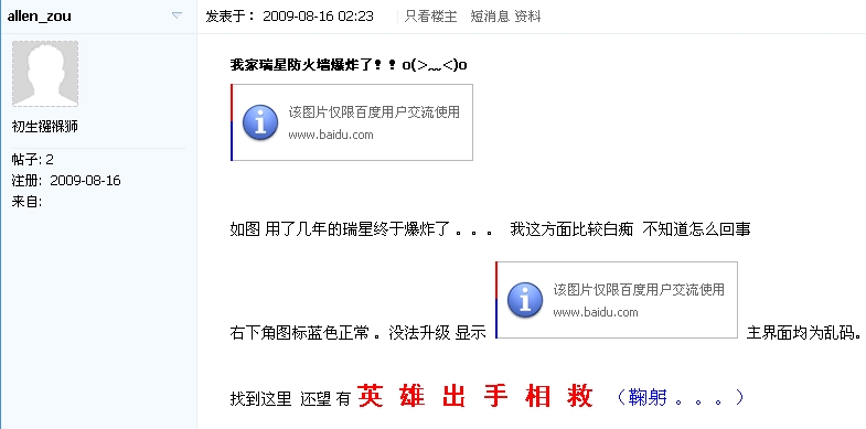 [求助] 我家瑞星防火墙爆炸了!!o(>﹏<)o
