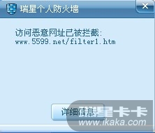 一开启IE,不管进什么网站,瑞星个人防火墙就拦截,但可正常使用。只要不把IE关了,下次就不会再弹出来!