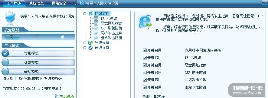瑞星卡卡安全论坛个人产品讨论区瑞星个人防火墙V16瑞星个人防火墙2011 防火墙不会弹出是否允许程序访问网络的对话框