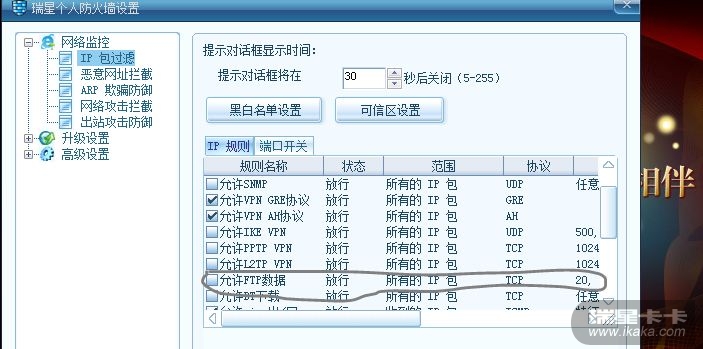 瑞星防火墙阻止FTP上传文件
