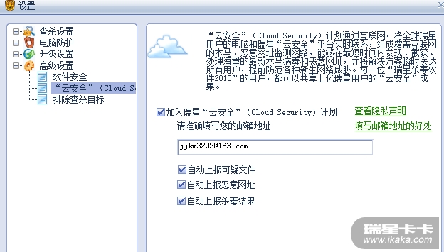 “云安全(Cloud Security)”计划是网络时代信息安全的最新体现,它融合了并行处理、网格计算、未知病毒行为判断等新兴技术和概念,通过网状的大量客户端(瑞星卡卡用户)对网络中软件行为的异常监测,获取互联网中木马、恶意程序的最新信息,推送到Server端进行自动分析和处理,再把病毒和木马的解决方案分发到每一个客户端。