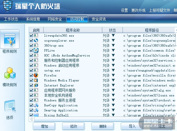 2、打开防火墙【访问控制】-【程序规则】