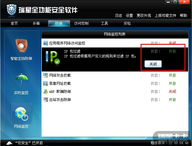 我想通过瑞星防火墙把