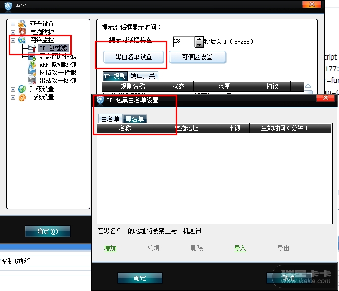 在网络监控中把这两个IP添加到IP包过滤和恶意网址拦截中的黑名单里