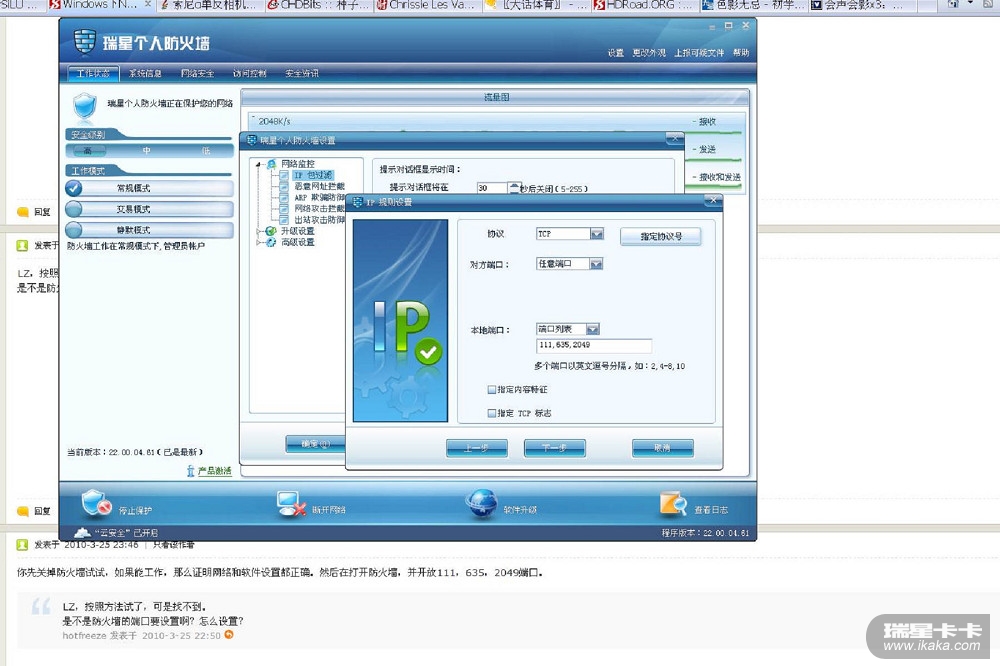 [已解决] 如何正确打开瑞星防火墙的端口?
