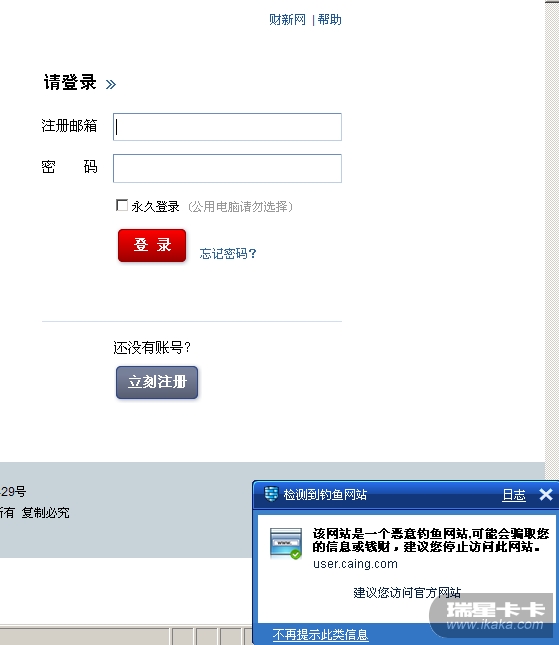 瑞星误报!!!财新网怎么成了钓鱼网站啊???请解决!