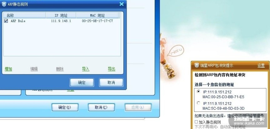 一个网卡的IP和MAC是唯一的吧,我已经绑定了,怎么又弹出选择信任IP的对话框,怎么选择哟?