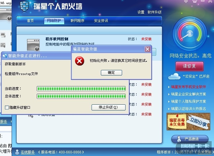 请您提供“在开始-所有程序的-瑞星个人防火墙下出现多个修复、安装包制作、监控中心等菜单”的截图看看,截图上传方法请参考: