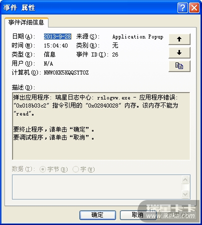 请楼主在瑞星的安装目录下,查看有没有rslogvw.exe的.dmp格式文件?