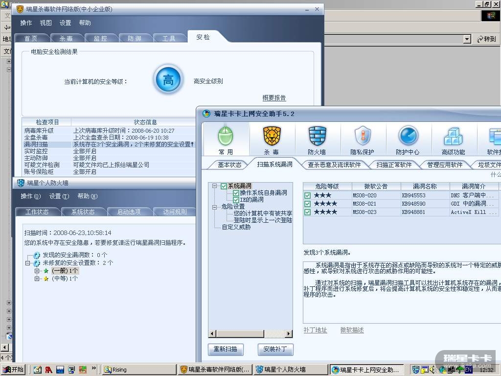 补丁ms08 - 020 021 023这三个补丁已经打上了。可是卡卡一扫描漏洞就提示这三个没打上,奇怪?
