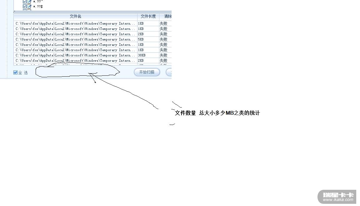 您用的是vista系统吗?如果是的话,尝试一下右键单击桌面上的卡卡快捷方式,选择“以管理员身份运行”,然后再尝试清理垃圾文件是否正常?