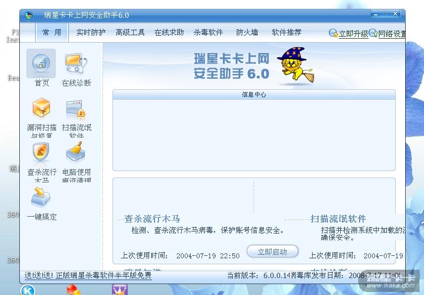 我刚安装了卡卡6.0,但出现的软件主界面的字体和安钮显示不完整.比如木马查杀只看到个查字,好像还有三分之一的界面没有显示出来,这是什么回事,请帮忙解决!!