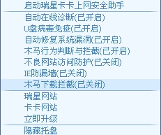 在使用卡卡6时,如果开启木马行为一下等4个开启时,ie便无法打开,