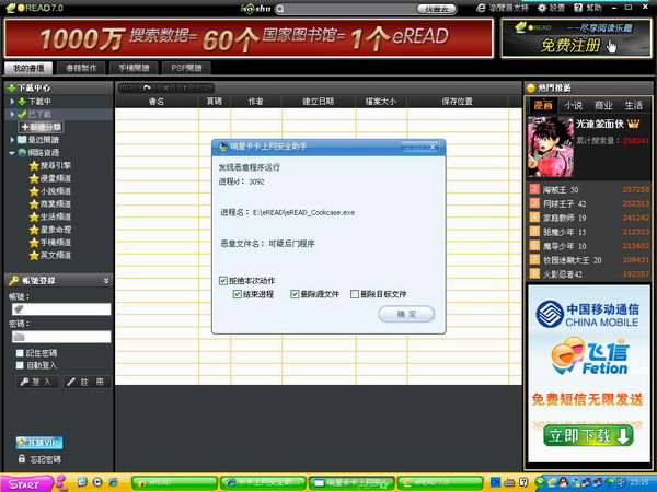 一启动eREAD,卡卡6就报是恶意程序,请问是真是假?