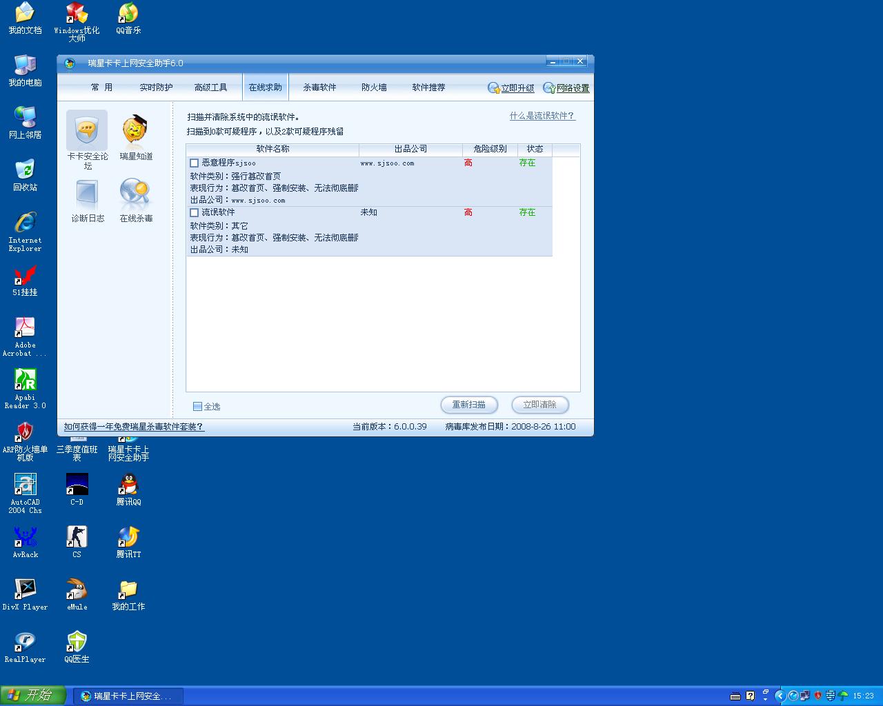 卡卡无法搞定该两个流氓软件,请尽快升级。附近为屏幕截图