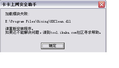具体情况是:点击IE-安全助手-痕迹清理,出现以下提示,重装卡卡也没有用,重装IE7也没有用.