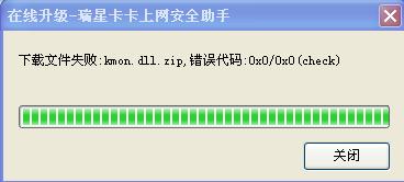 如题,已经很久不能更新了,一更新下载到Kmon.dll.ZIP就出错,无法下载,这是怎么回事哟~~????我还是从官网上下载的最新卡卡,才装上都不能升级!~~~