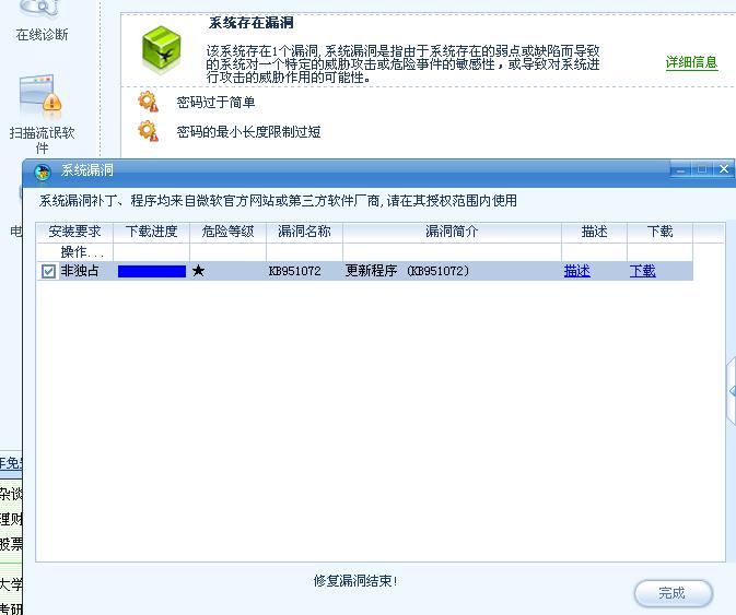 用卡卡和防火墙都扫到了这个漏洞,用修复按钮下载了就是无法安装,直接下载后再安装也是如此。不知道是怎么回事?具体如截图: