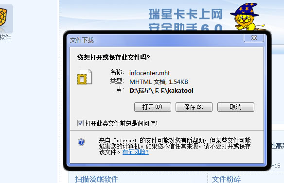 我用的是VISTA家庭版的,网上也说卡卡支持VISTA的。我安装好卡卡安全助手的时候,未出现什么问题,但是一打开,就会出现很多下载的文件。下面是我传图,大家帮忙看看!