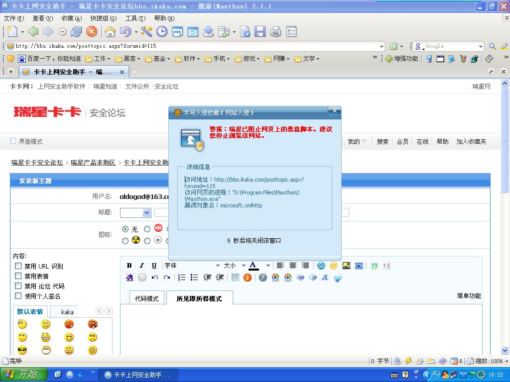 楼主是不是安装了2009测试版啊,我刚才访问图片中的地址,卡卡6.0没有任何提示啊