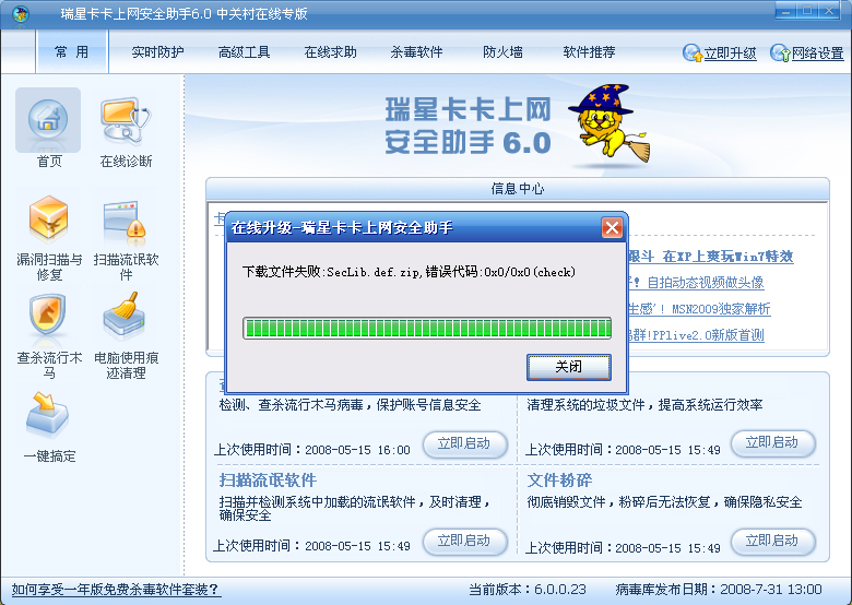 2、关闭安装的防火墙和其他安全类产品,再升级。