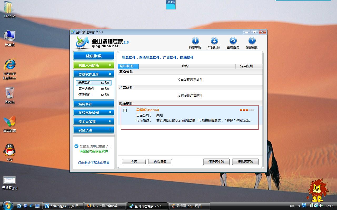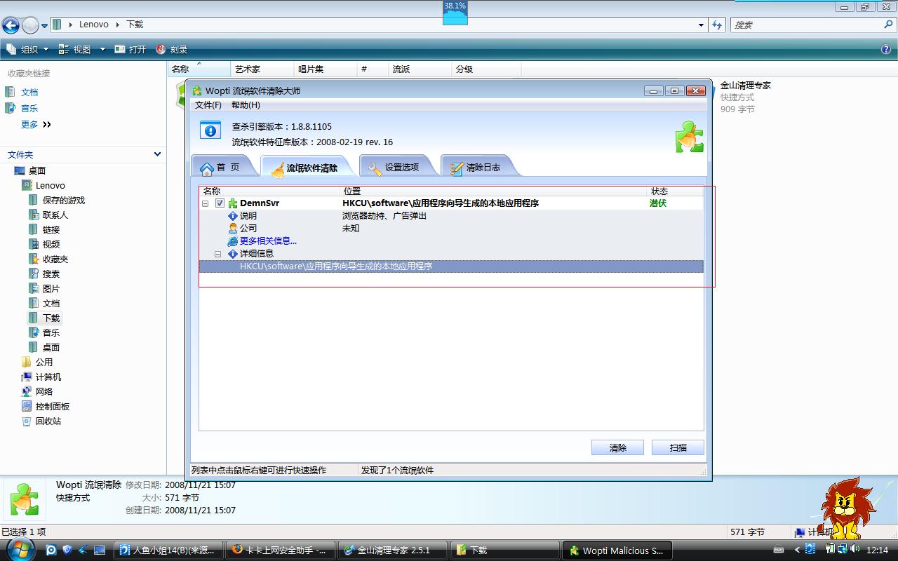 用windows优化大师带的清理大师扫描系统发现恶软