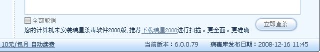 还测试什么?2009无论全功能还是单机版都一样,2009是把补漏洞彻底交给卡卡完成,所以如果没装卡卡会提示。但反过来卡卡只认2008,根本不认2009。我分析,是瑞星要专为2009出卡卡7.0。
