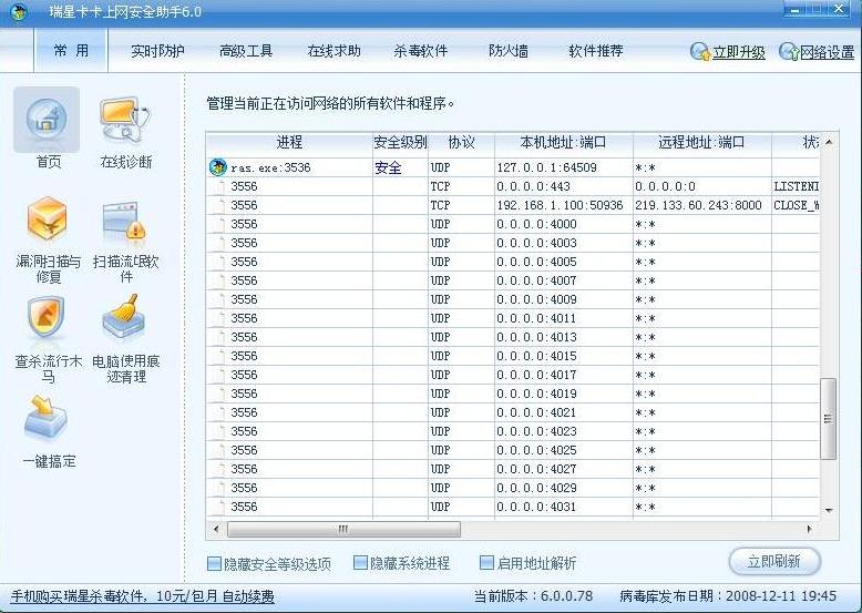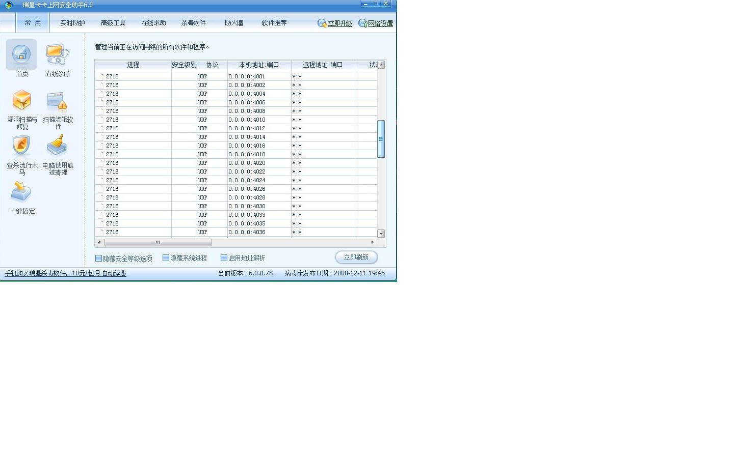 瑞星个人防火墙2009公测