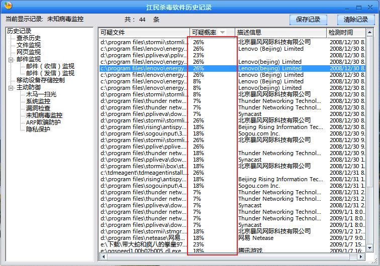 而江民可以分析并显示一些常见项的威胁级别 ,不像瑞星-------只有触发规则才会显示!!!