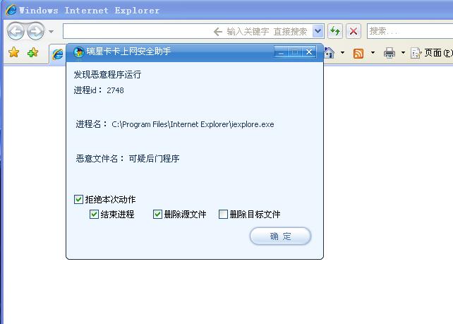 楼主在控制面版的添加删除程序中找到不需要的工具条,卸载掉即可,出现这个提示是卡卡的行为判断发现了恶意行为程序或者是拦截到工具条操作IE。