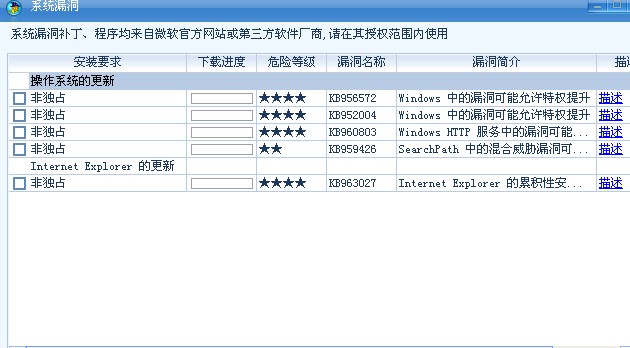 在控制面板里面的添加或删除程序那里看看是不是有这些漏洞,
