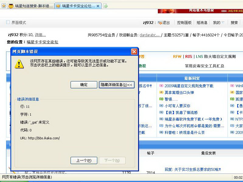 [求助] 我的瑞星卡卡怎么老是显示脚本错误是怎么回事?
