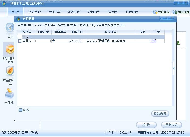 请教大家我用卡卡修复漏洞的这个windowsxp-kb955839-x86-chs此补丁无法打上,不知是怎么处理?