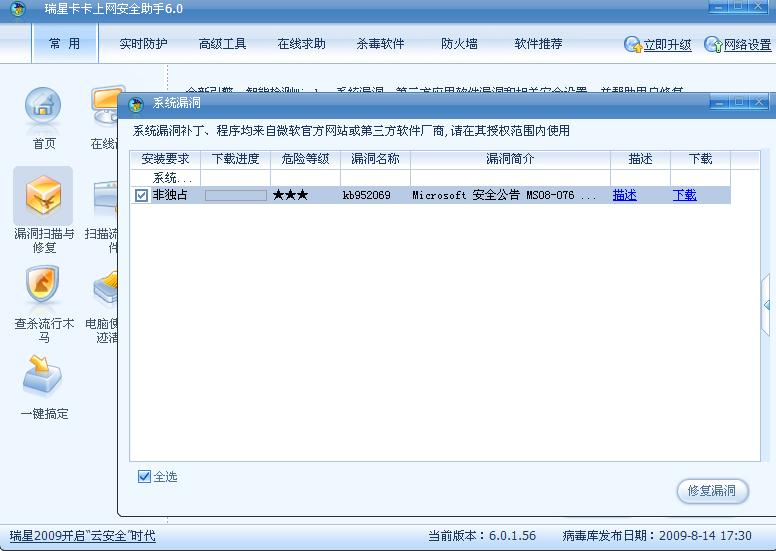 卡卡升级到6.0.1.56漏洞扫描kb952069补丁依然打不上。