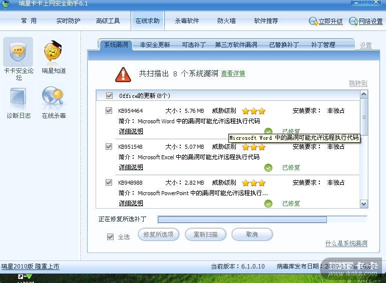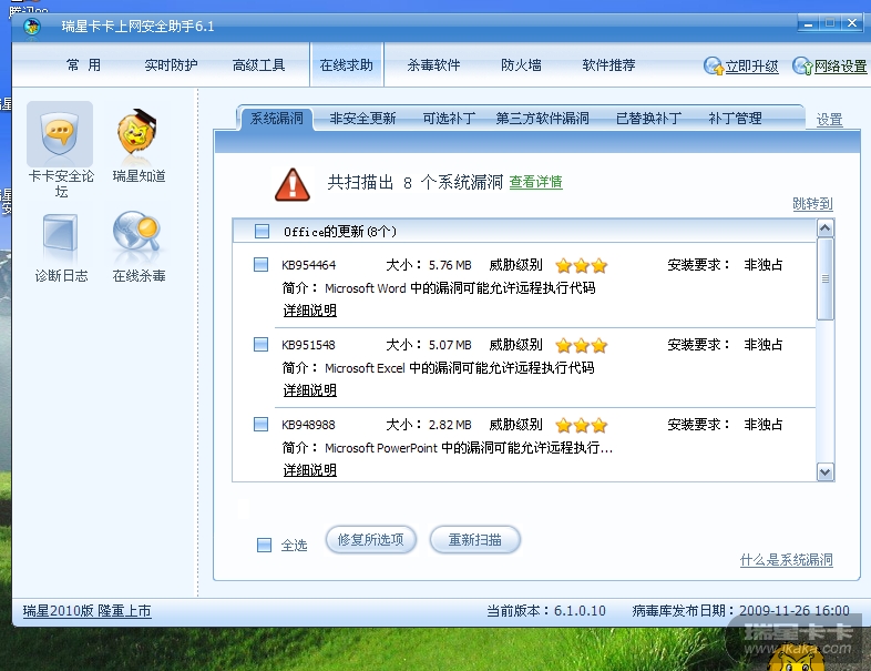 如果是Ghost版本的xp系统,则有可能因为系统自带的是简化版的office,而导致无法修补所有office相关的漏洞补丁。